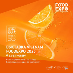 «Vietnam Foodexpo» — ведущая международная выставка продуктов питания и напитков во Вьетнаме. Выставка продлится до 15 ноября. Работа кубанской делегации направлена на реализацию стратегии по увеличению несырьевого неэнергетического экспорта Краснодарского края.